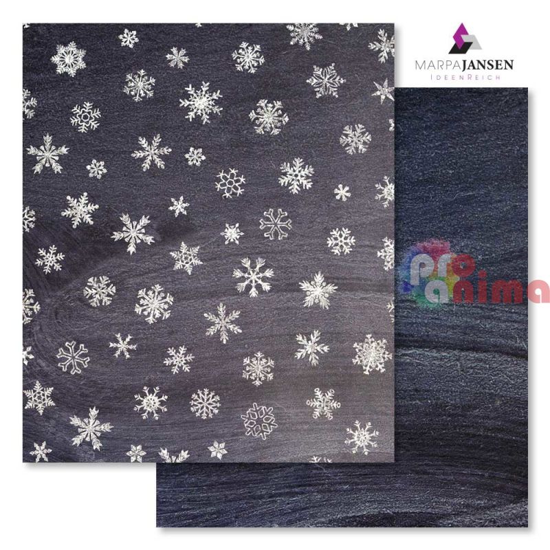 Картон варио Marpa Jansen, 50 x 70 cm, 300 g/m2, снежинки на черен фон