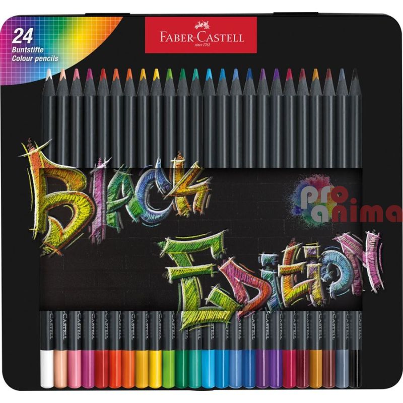 Цветни моливи Faber-Castell Black Edition, 24 цвята, в метална кутия
