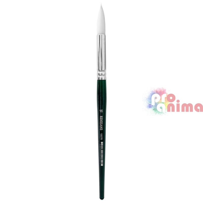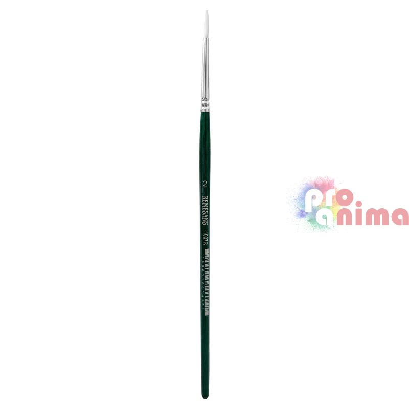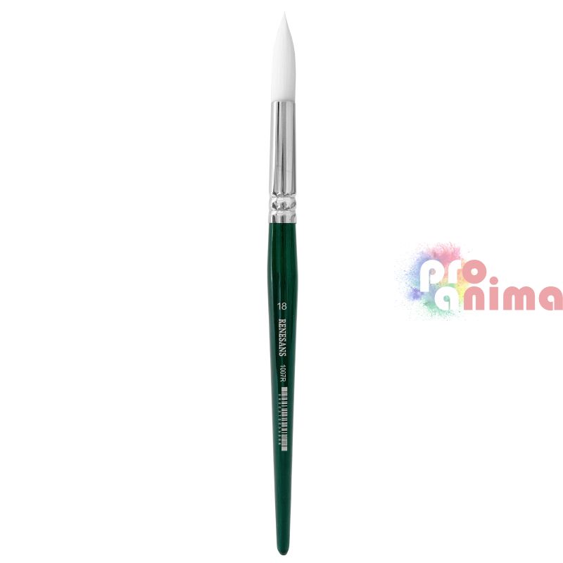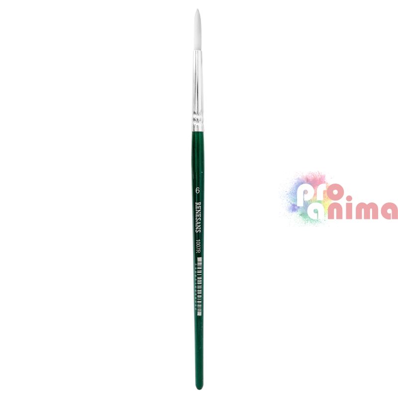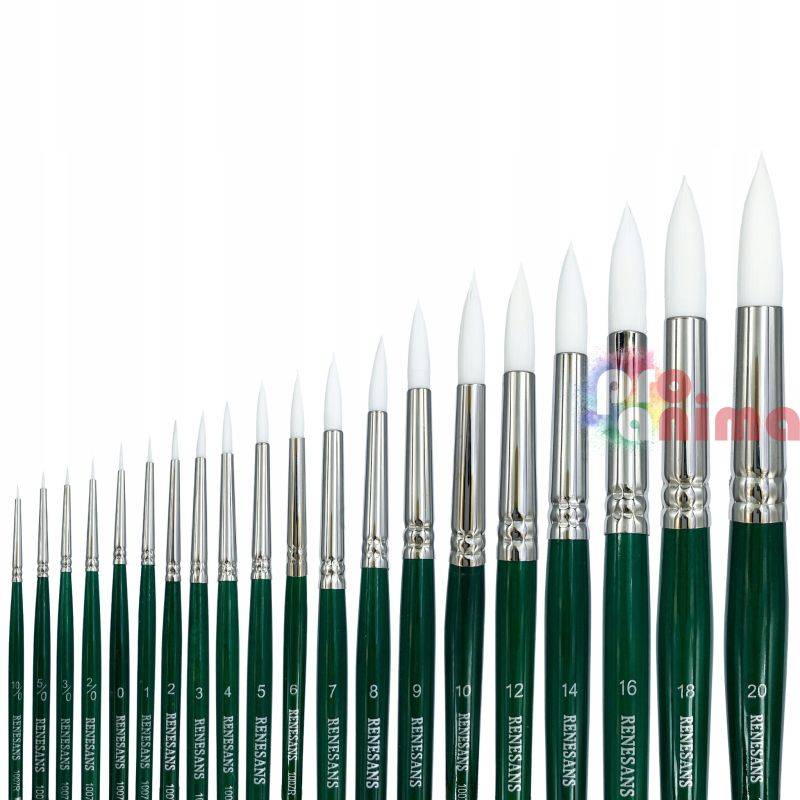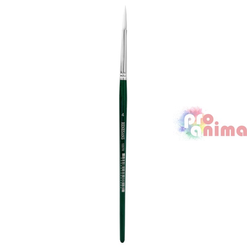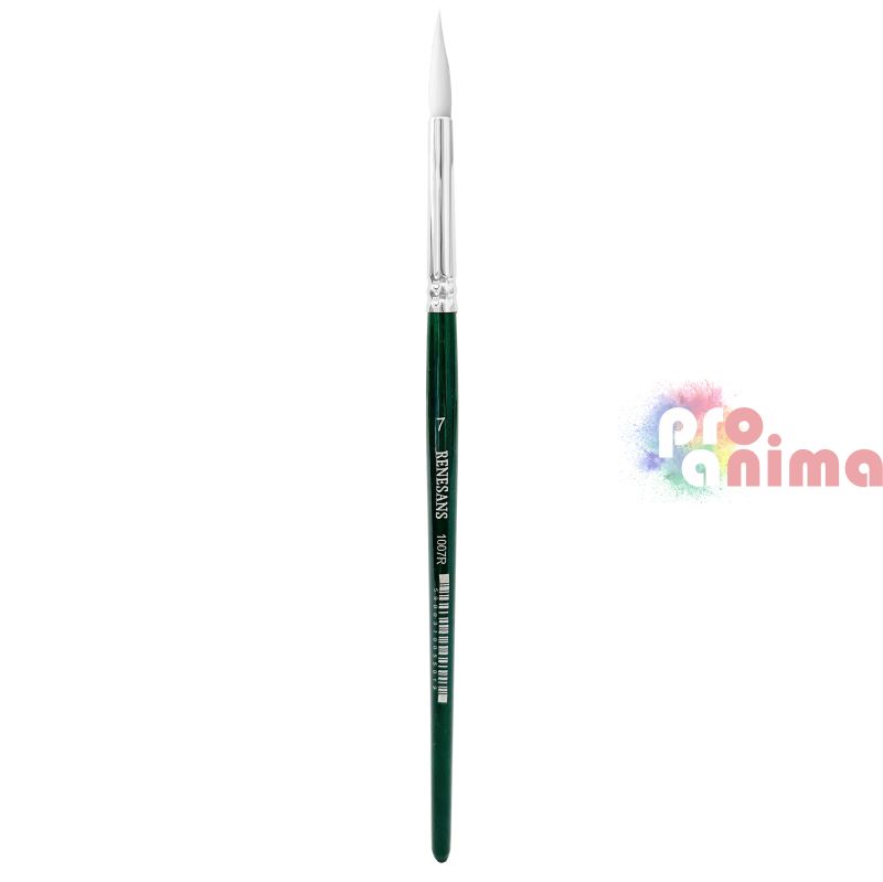 Четки за рисуване Renesans 1007R, Бяла синтетика, Зелена дръжка, Объл връх, Отделни номера