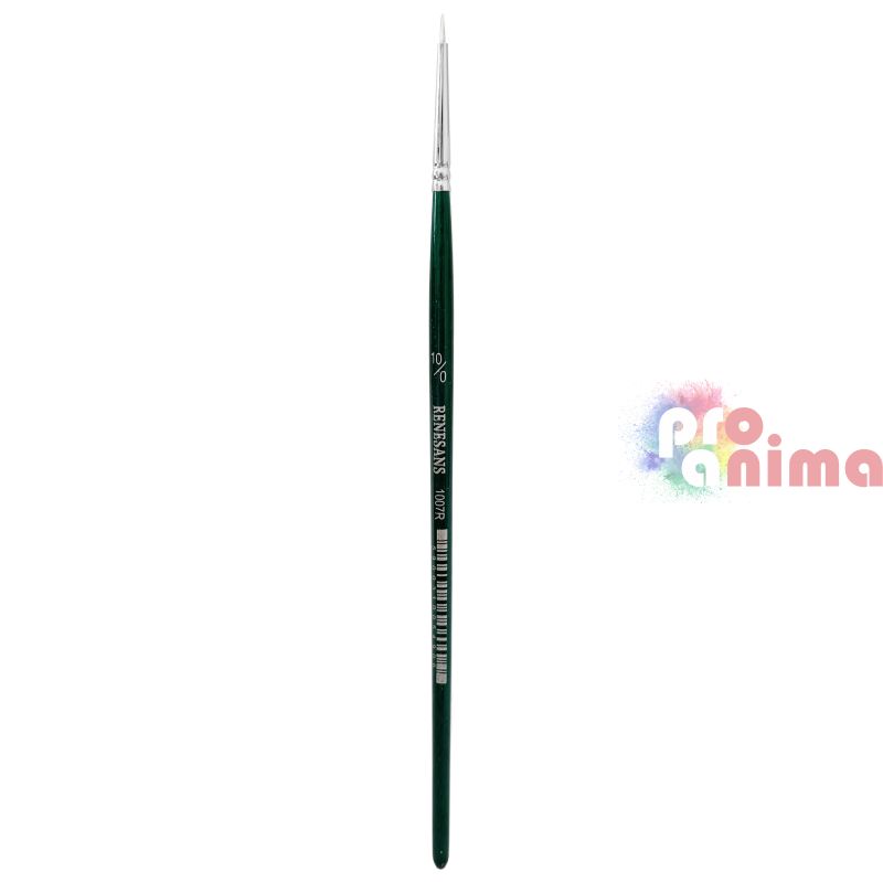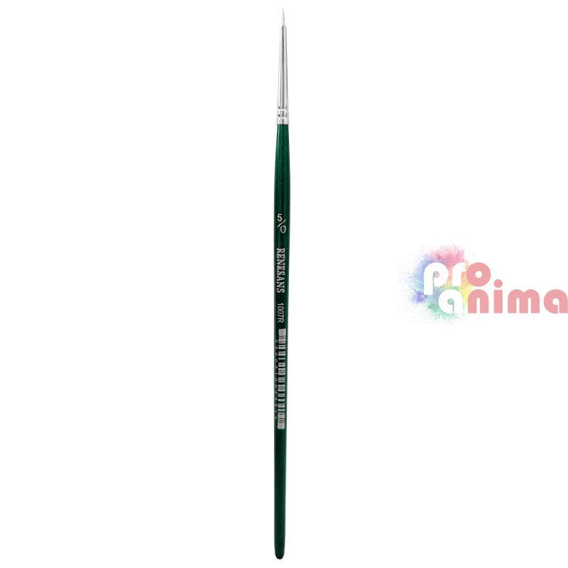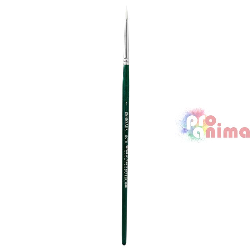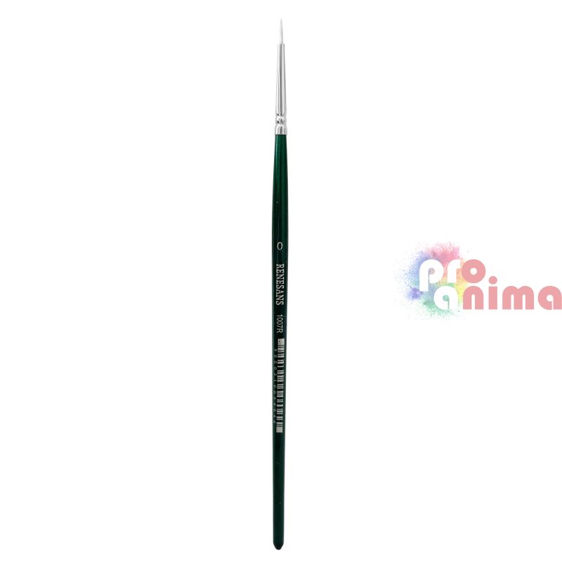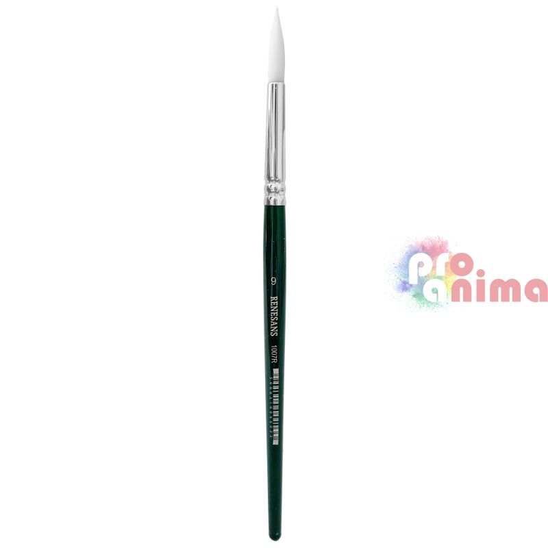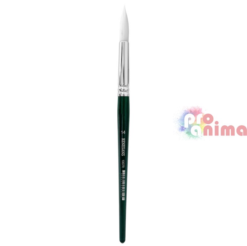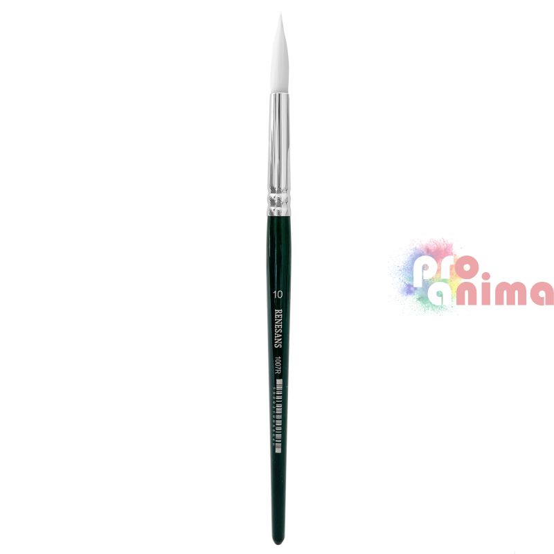 Четки за рисуване Renesans 1007R, Бяла синтетика, Зелена дръжка, Объл връх, Отделни номера