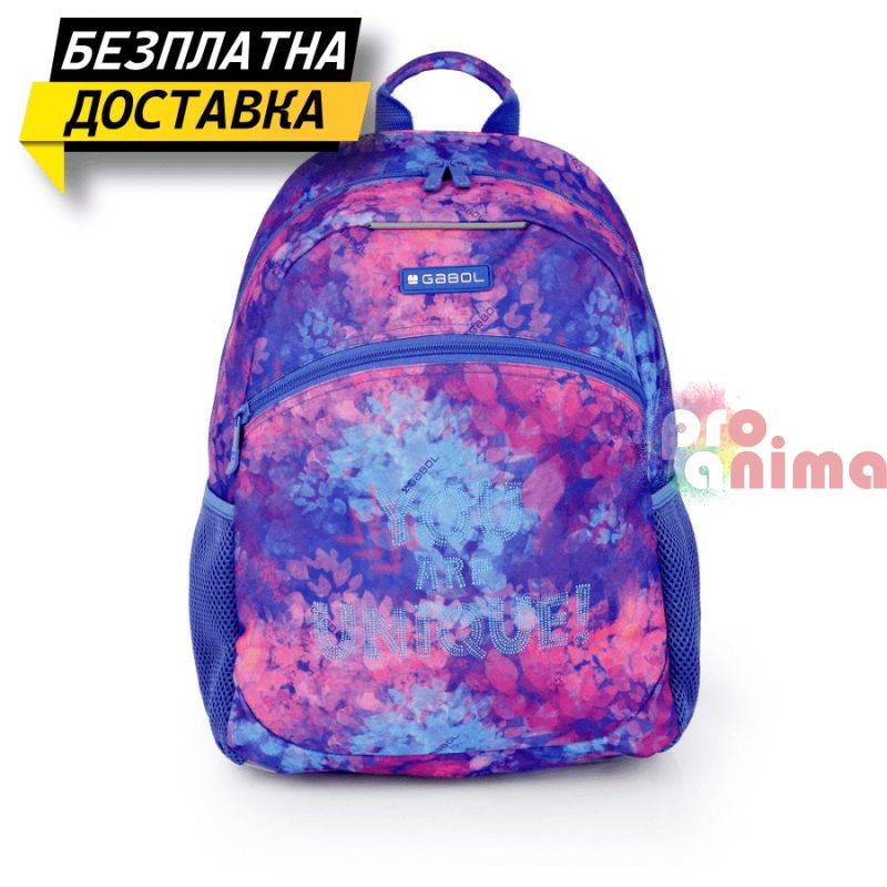 Раниците за училище Gabol са изработена от висококачествени материали, което ги прави здрави, издръжливи и устойчиви на вода и надраскване. Комфортни и удобни, ученическите раници Gabol имат добро разпределение за всички учебници, тетрадки и други необходими материали, както и външни джобове и други отделения за съхранение на допълнителни принадлежности, бутилки за вода, ключове или други дребни предмети. Раниците за училище Gabol са с подплатени презрамки и гръб, които гарантират комфорт при носене, особено ако ученикът трябва да носи тежки учебни материали и пособия. Разнообразието от цветове и дизайни на ученическите раници Gabol ги прави подходящ избор за ученици от различни възрасти и с различни предпочитания.