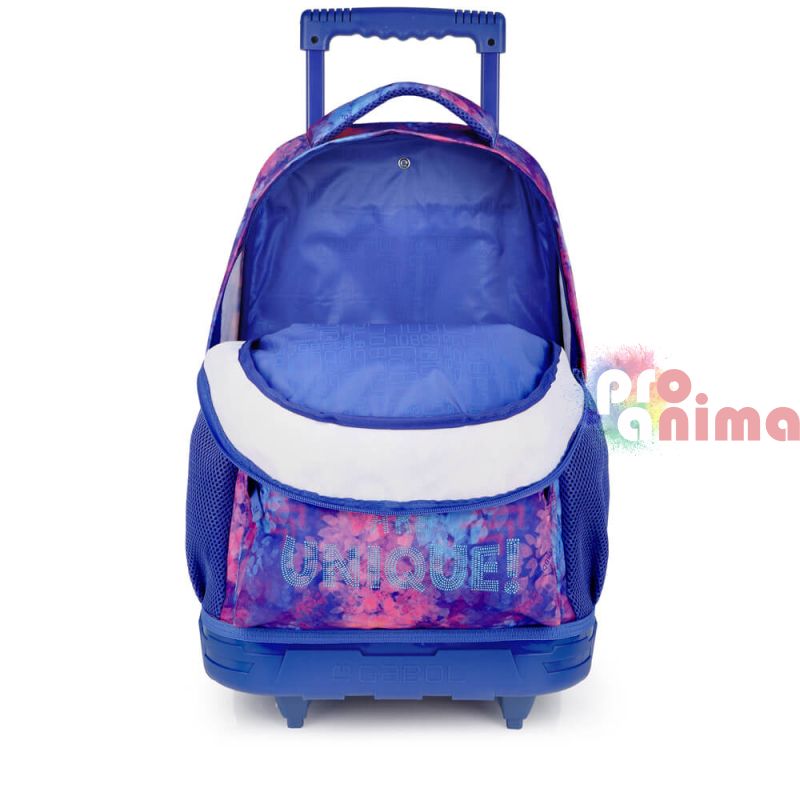 Раницата за училище Gabol Sunset с колелца е изработена от устойчиви и издръжливи материали, впечатлява с доказани в годините здравина, удобство, функционалност и страхотен дизайн. Тази ученическа раница е не само красива, но и изключително практична, благодарение на отличното й разпределение и допълнителни джобове.