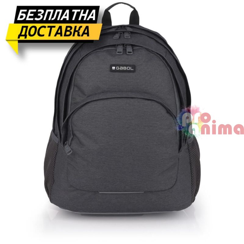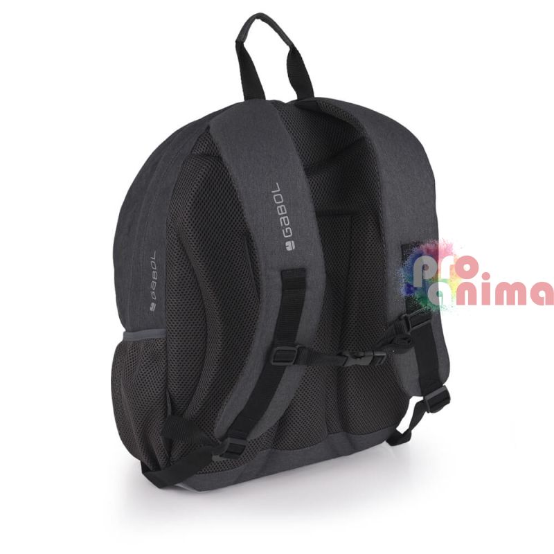Ученическа раница за момче Gabol Wolf 23724016, три отделения, мрежест гръб, сива