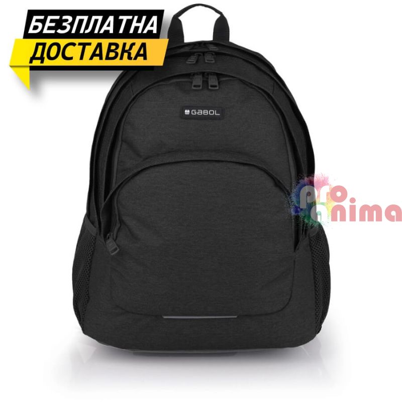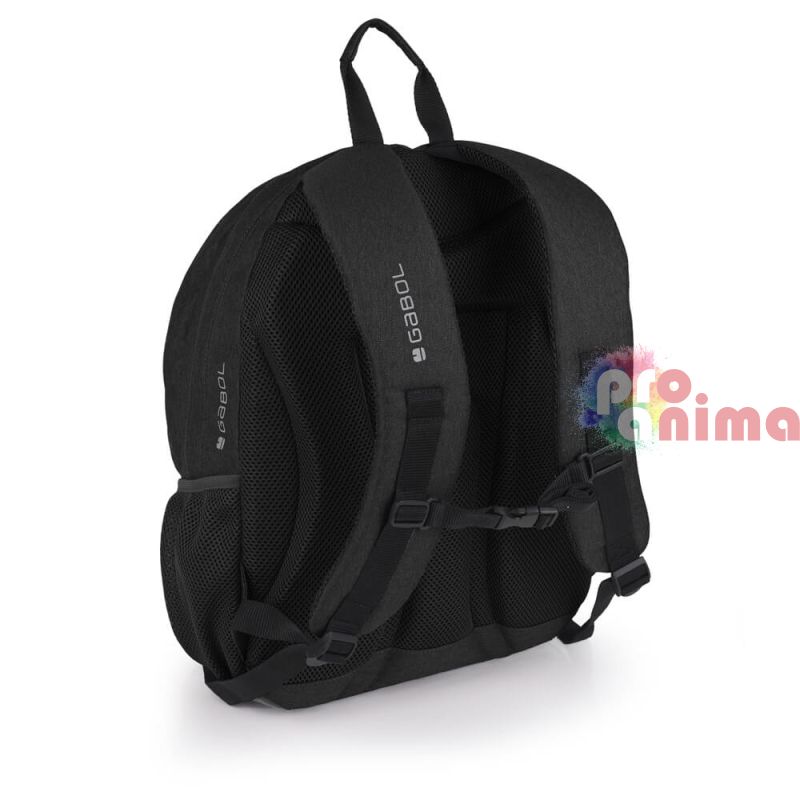 Ученическа раница за момче Gabol Wolf 23724001, три отделения, мрежест гръб, черна