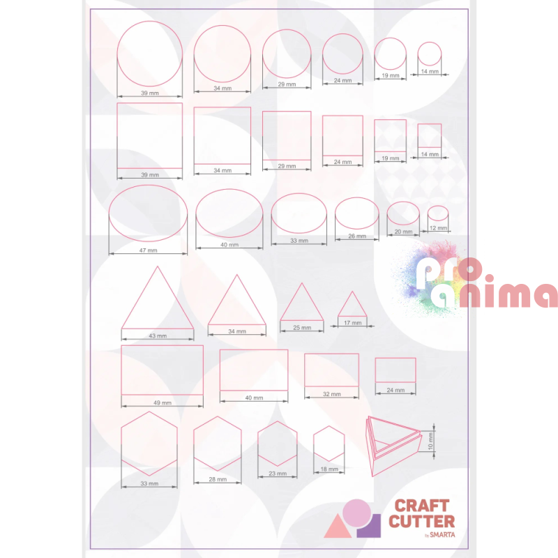 Комплектът за изрязване Smarta Geometric Cutters съдържа 30 бр. пластмасови формички с различни по големина геометрични дизайни. Подходящи са за направата на красиви фигурки и елементи за всякакви арт и крафт проекти.