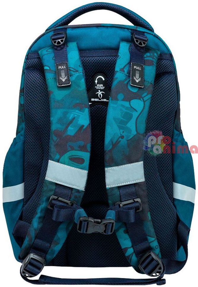 Ученическите раници Belmil се отличават със своя изключителен комфорт, съчетан с високо качество на използваните материали. Раницата за училище Belmil Skate е от най-популярните и търсени модели раници на производителя, поради практичност, ергономичност и страхотен дизайн. Тежи само 700-750 г.