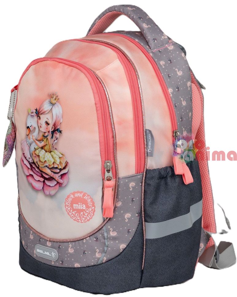 Ученическите раници Belmil се отличават със своя изключителен комфорт, съчетан с високо качество на използваните материали. Раницата за училище Belmil Miia 1 е от най-популярните и търсени модели раници на производителя, поради практичност, ергономичност и страхотен дизайн. Ексклузивна лимитирана серия на българската илюстраторка Ивайла Стоева (Miia). Тежи само 700-750 г.