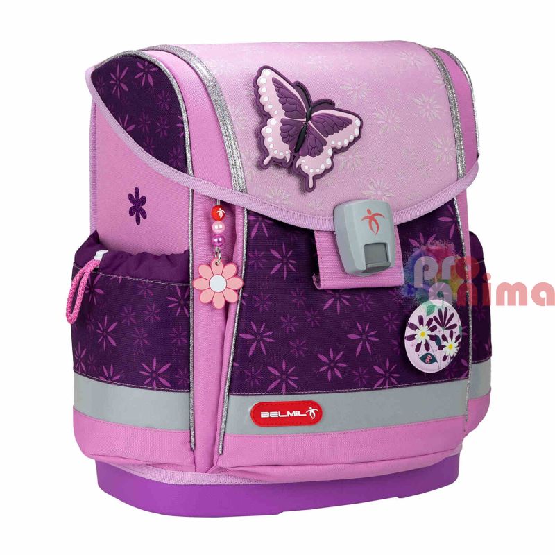 Ергономична ученическа раница-кутия Belmil Purple Spring