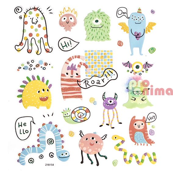 Подарете усмивки и блясък с тези очарователни стикери с глитер "Чудовища пакостници"!