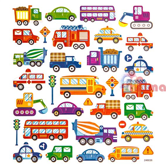 - Разнообразие от превозни средства: От училищен автобус и пожарна до багер и такси, този комплект предлага широка гама от стикери на обществени превозни средства.