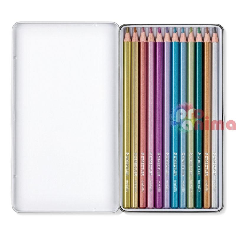Цветни моливи в метална кутия Staedtler Design Journey, 12 цвята, металик
