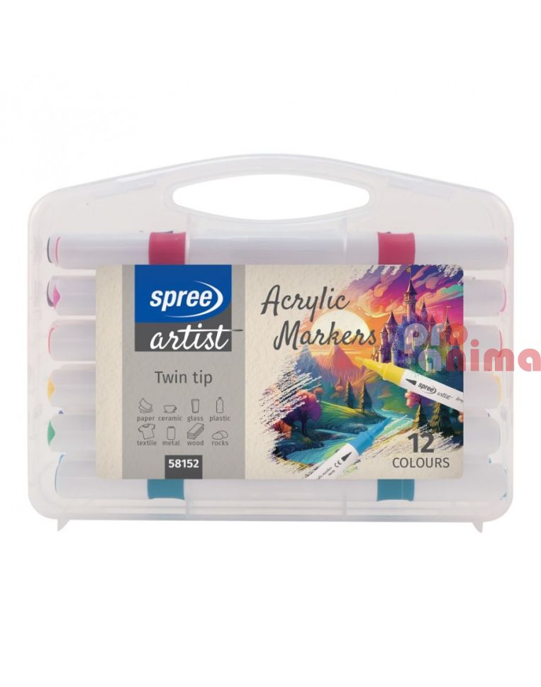 Комплект акрилни маркери Spree Двувърхи 12 цвята