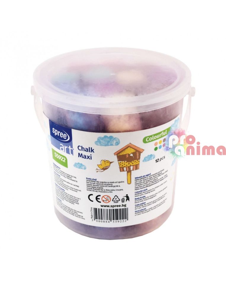 Цветните тебешири Spree Art Maxi са идеални за малки и по-големи творци, които обичат да изразяват себе си чрез ярки цветове. Всеки комплект включва 12 бр. тебешири, които ще превърнат всяка повърхност в платно за изкуство.