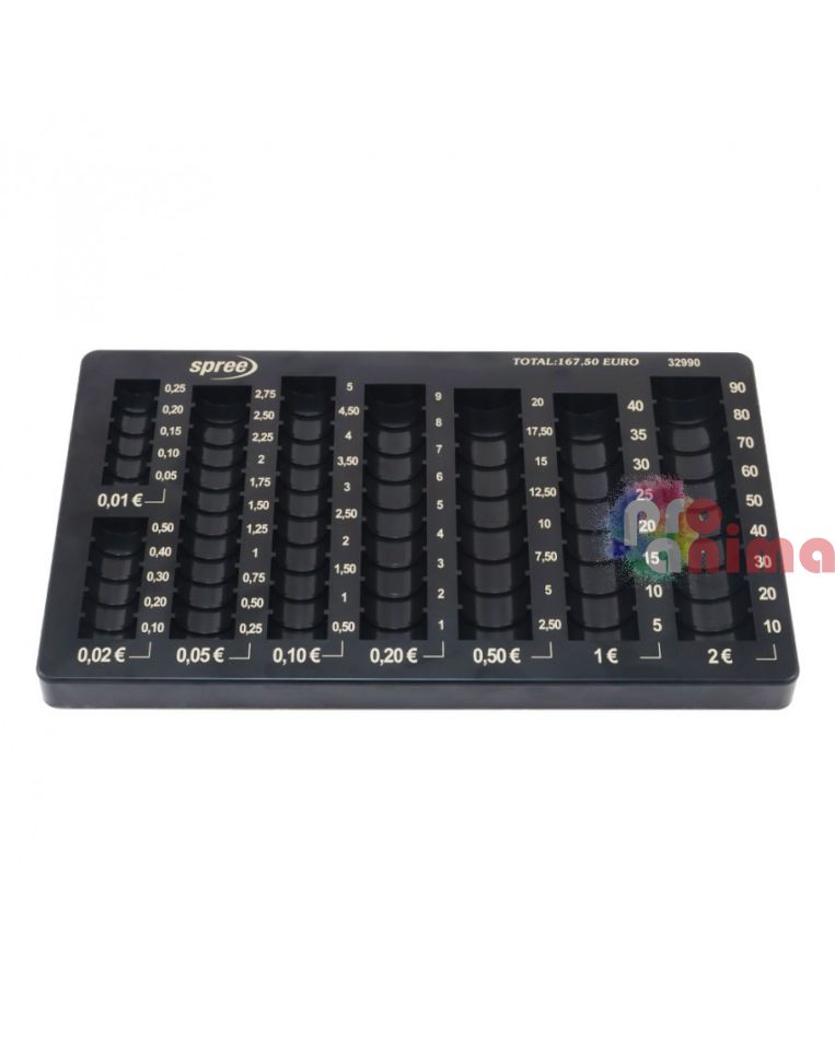 Организирайте монетите си с нашия удобен монетник! Разполага с 8 отделения, идеални за монети от 1, 2, 5, 10, 20 и 50 цента, 1 и 2 евро. Побира евромонети на обща стойност 167.50. Компактен и подходящ за поставяне в чекмедже.