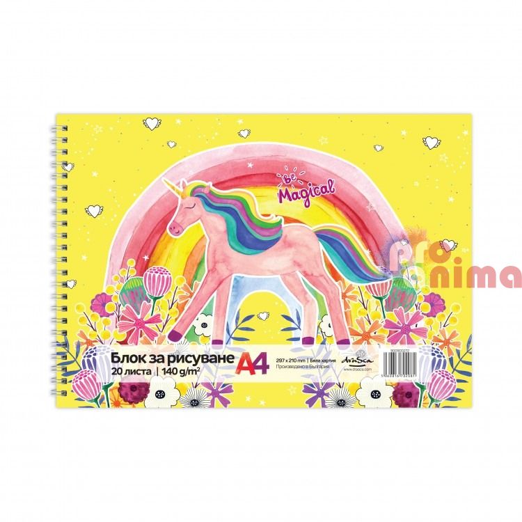 Скицник за рисуване Drasca Kids World, А4, 140 g/m2, 20 листа, Еднорог