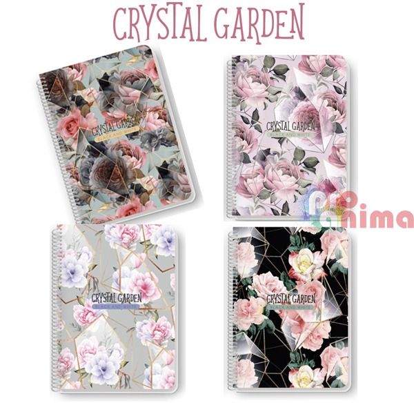 Тетрадка Black&White, среден формат B5, 80 листа, редове, спирала, Cristal Garden