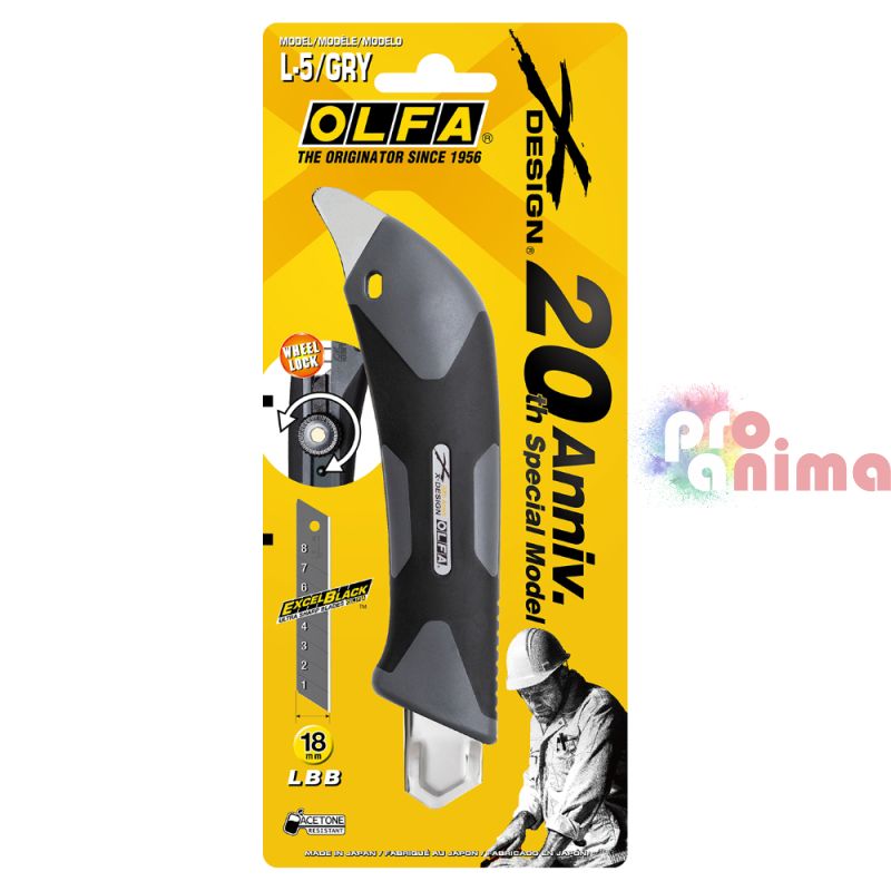 OLFA L-5 GRY 18mm – Професионален нож с 18mm острие, проектиран за прецизни и ефективни рязания на различни материали като хартия, картон и пластмаса. Изработен с алуминиева ръкохватка, този нож комбинира издръжливост с комфорт, осигурявайки сигурен и стабилен захват по време на работа. Ергономичният дизайн намалява умората при продължителна употреба и осигурява максимален контрол при рязане. Лесната смяна на острието и удобството при работа правят OLFA L-5 AL GRY отличен избор за домашни проекти, както и за професионални задачи в строителството, индустрията и офиса.