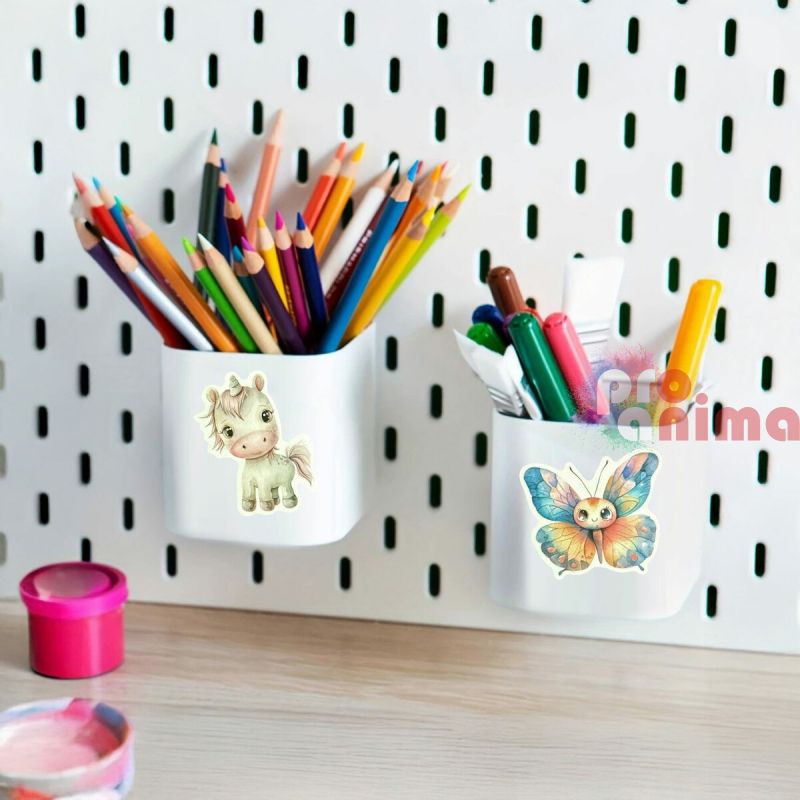 - Комплектът включва стикери под формата на различни сладки животни: жираф, маймуна, слон, коте, таралеж, пингвин и много други;