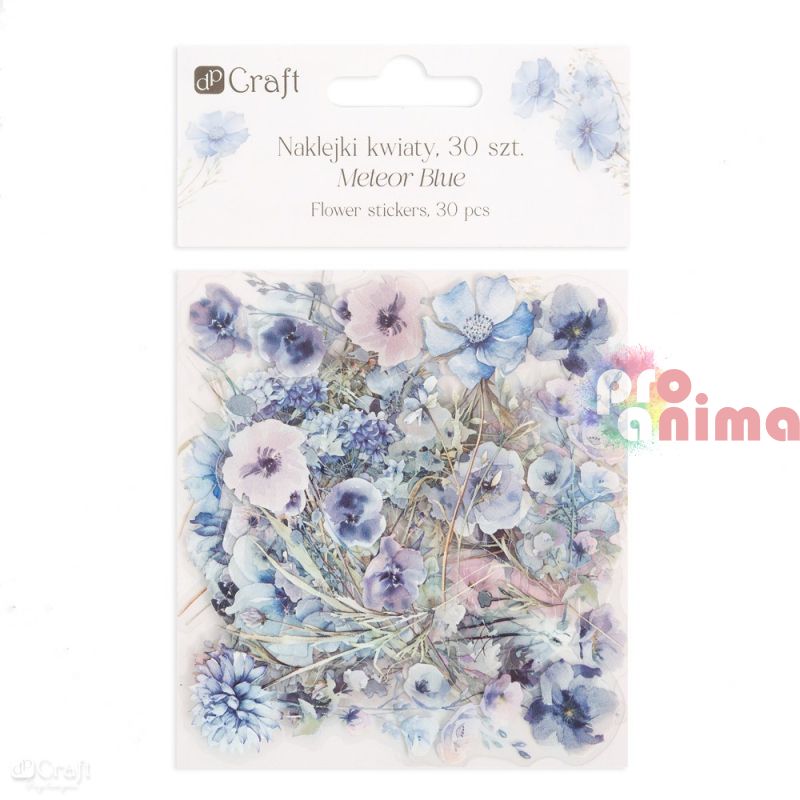 Стикери от прозрачно PET фолио, цветя, 30 бр., сини