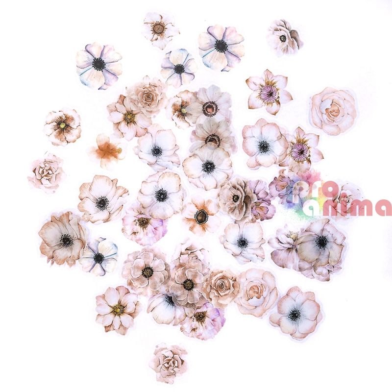 Стикери от прозрачно PET фолио, цветя, 50 бр., пастелни