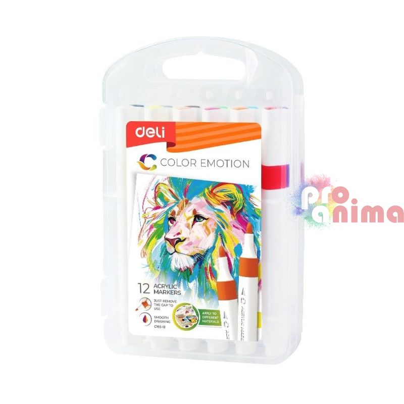 Акрилни маркери Deli Color Emotion 12 цвята Объл връх