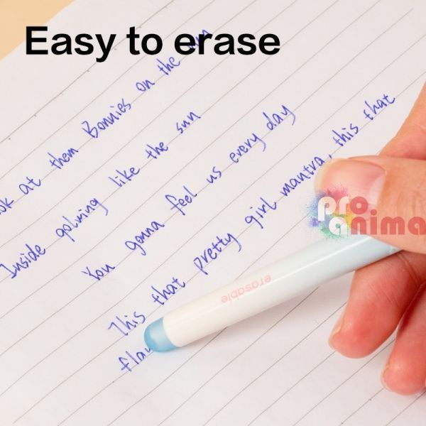 Изтриваема химикалка Deli EG660-BL с тънък връх 0.5 mm и наситено синьо мастило, което лесно се изтрива.