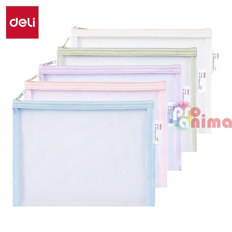 Папка с цип Deli, формат A5, мрежа от полиестер, 330 mic