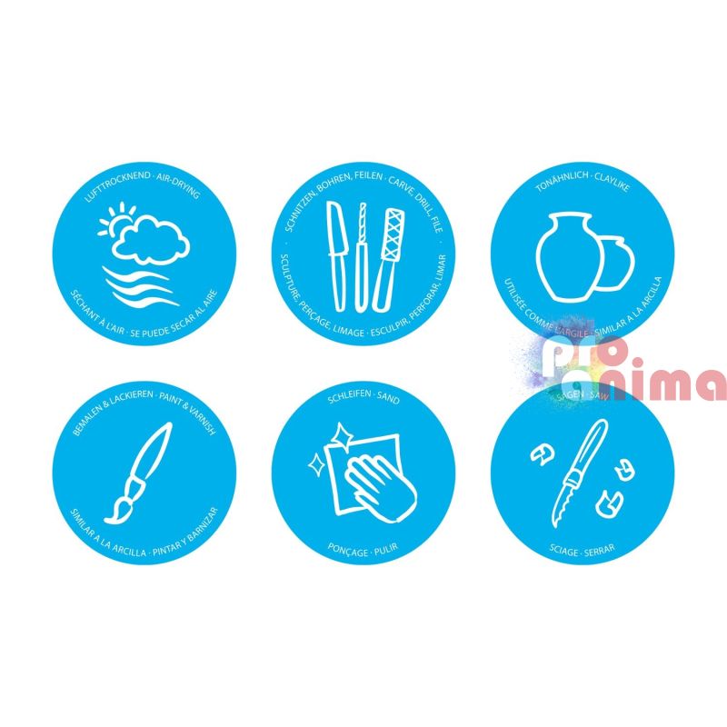 Самосъхнещата глина FIMO Air Light представлява готова за употреба моделираща паста, която изсъхва на въздух и се втвърдява.