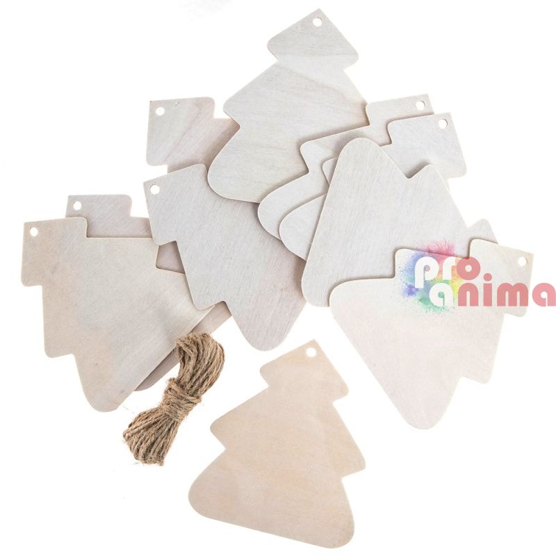 Дървени коледни висулки, Елхи, 10 бр., Бели