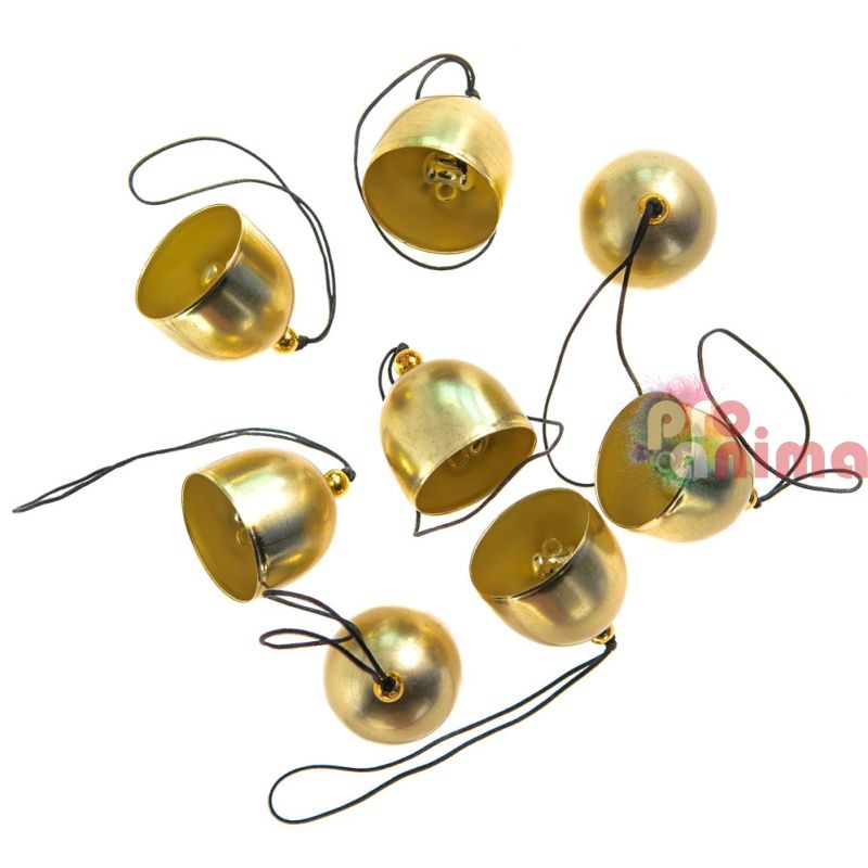 Звънчета за декорация, метални, 2.6 cm, 8 бр., винтидж, златисти