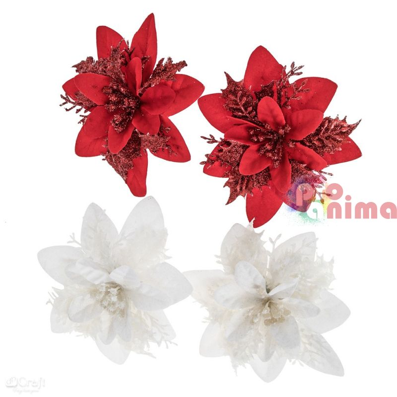 Комплект от 4 бр. декоративни цветя коледна звезда, идеално допълнение към централни декорации, коледни елхи, венци и други аранжировки вдъхновени от най-светлите празници.