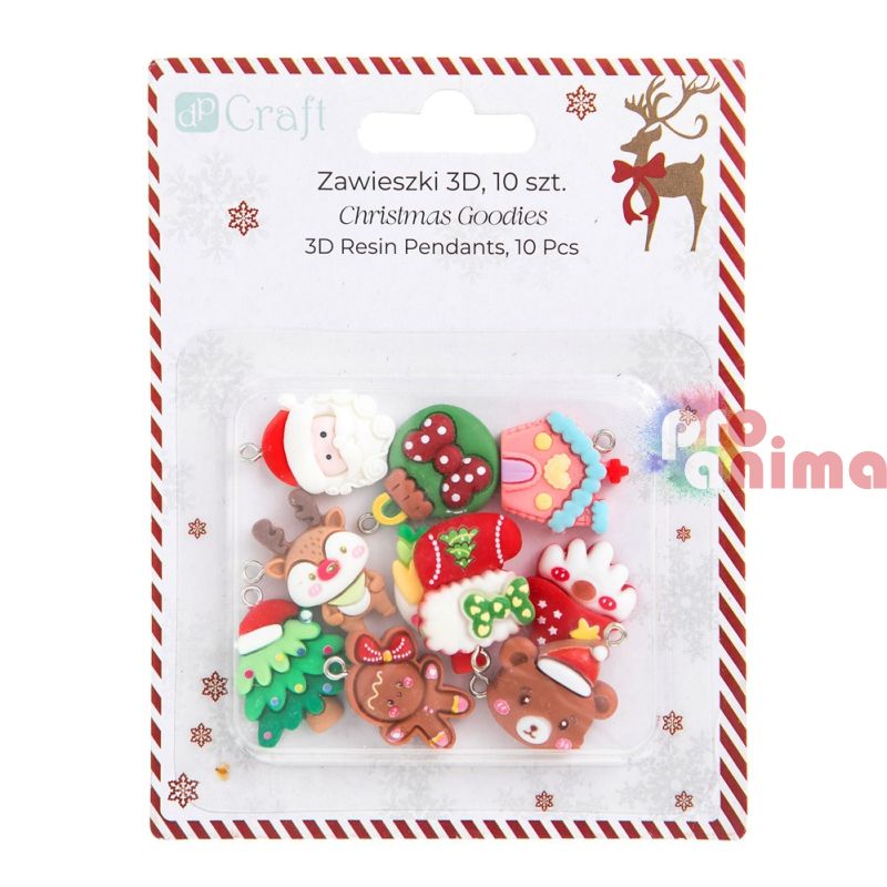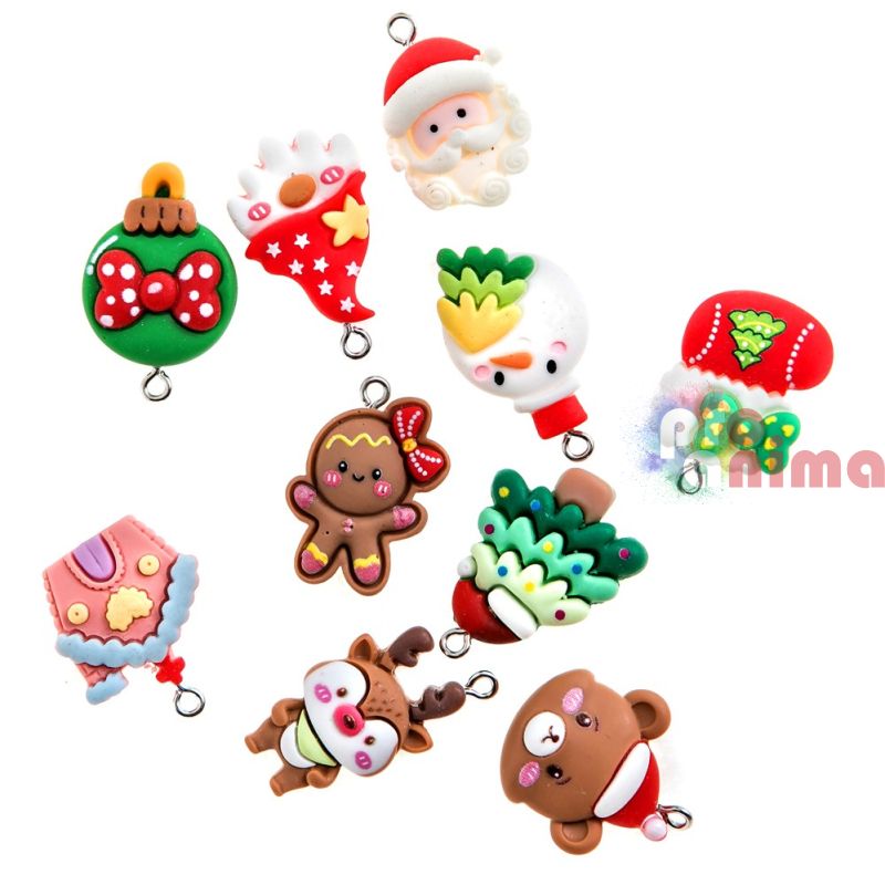 - Комплектът включва 10 бр. мини фигурки-висулки с коледни мотиви- елха, мече, снежен човек, джинджифилов човек, Дядо Коледа, елен, топка, медена къщичка, коледно чорапче, гном;