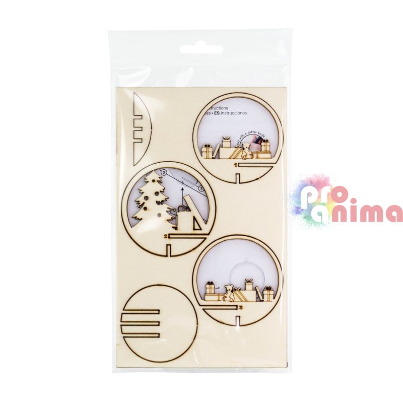 Дървени фигури за прозрачни топки, ф7.4 cm, Елха и коледни подаръци