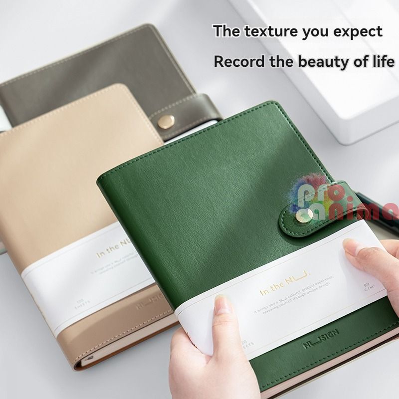 Бележник с копче Deli NuSign А5 120 л. Еко кожа Зелен, Бежов