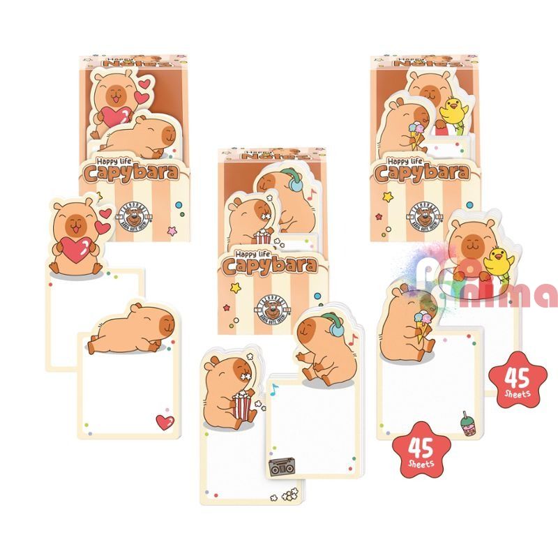 Комплект от 90 бр. самозалепващи се листчета с очарователни дизайни с капибара мотив. Удобно решение за водене на бележки у дома, на работа или в училище.