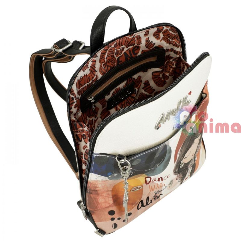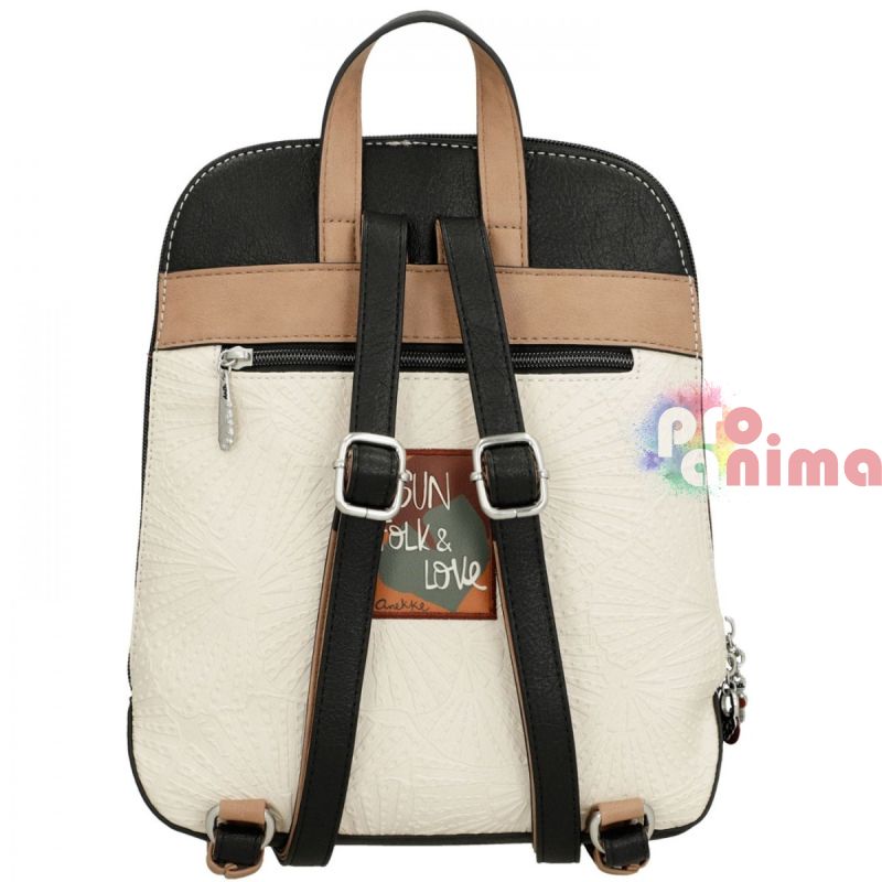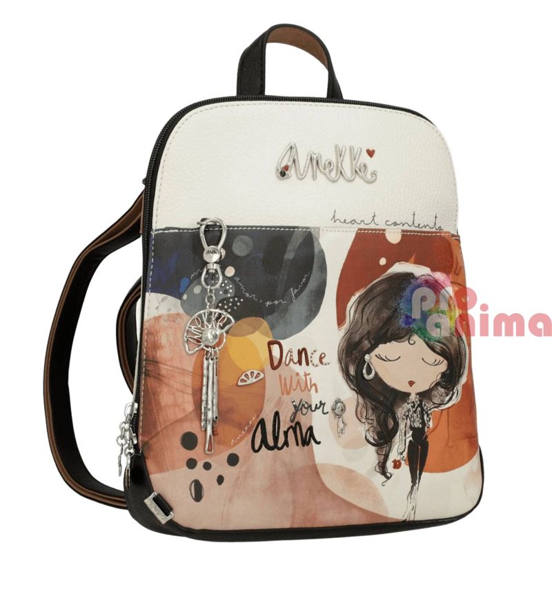 Дамска раница от колекцията Anekke Alma - вдъхновена от пътешествията из родината на Anekke - Испания. С мотиви на ветрила, точки и наситени цветове, които превръщат раницата в акцент на визията ви.