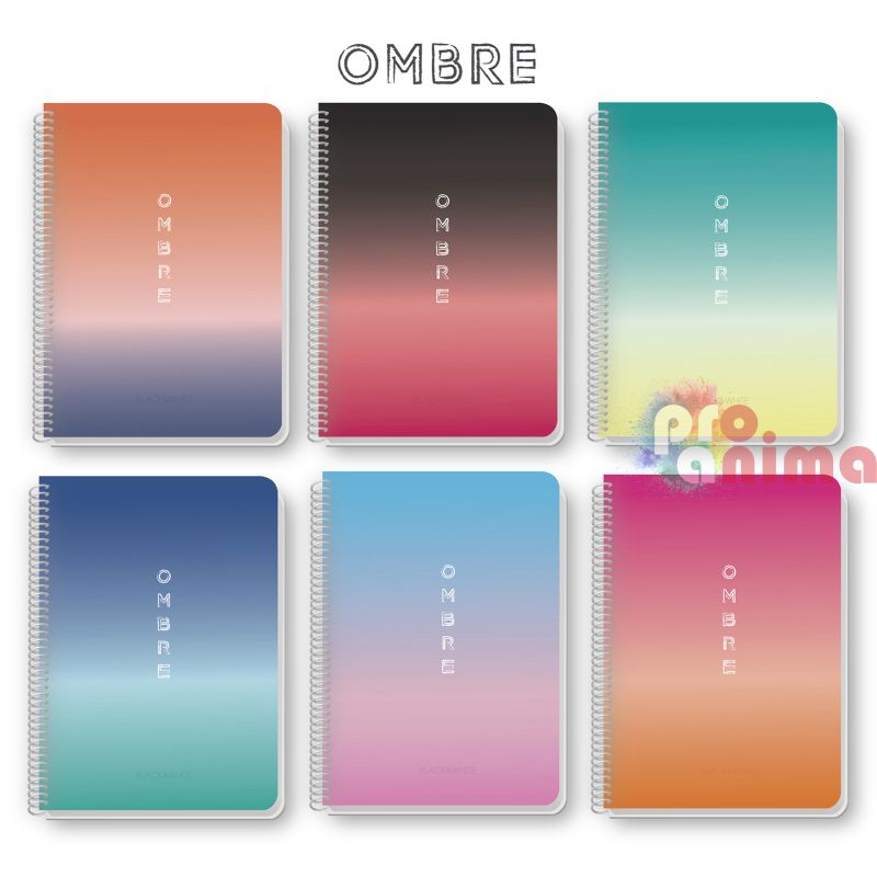Тетрадка Black&White, широки редове, 80 листа малък формат, спирала, Ombre