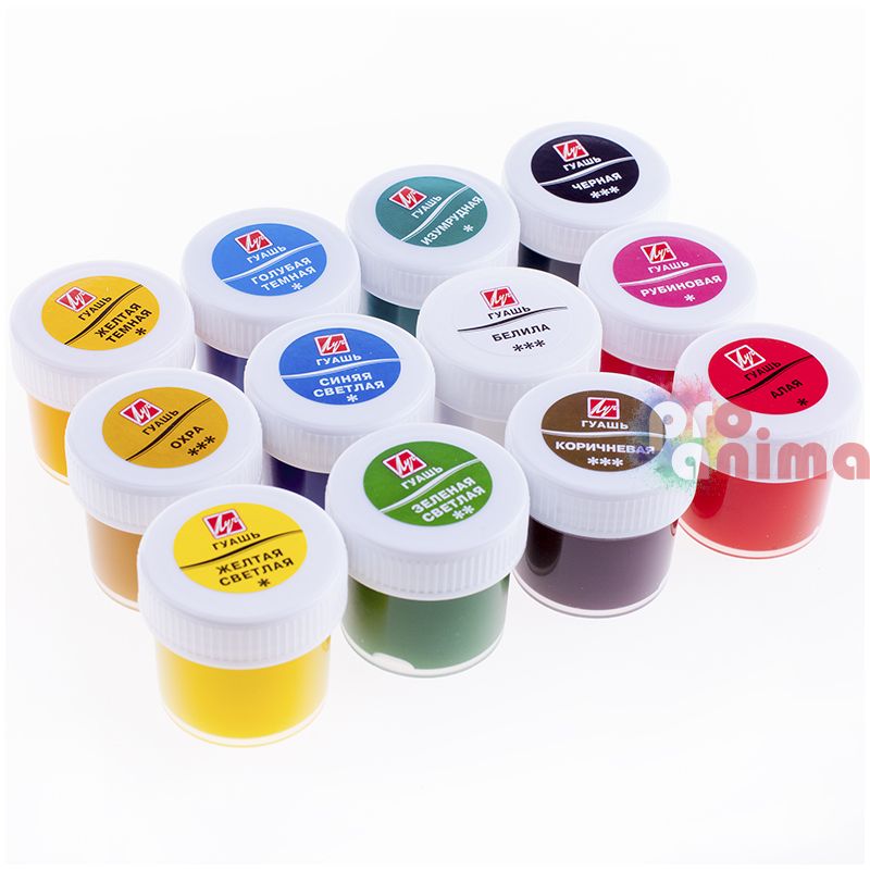 Темперни бои / гваш Луч Клаcсика, 12 цвята, в бурканчета