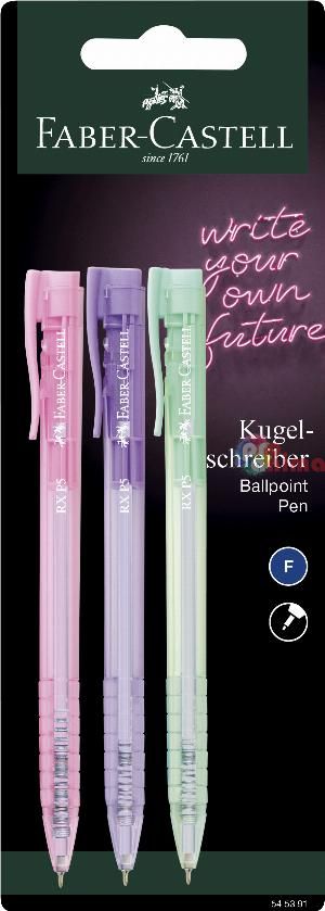 Химикалки Faber-Castell RX5, 0.5mm, 3 броя, синьопишещи