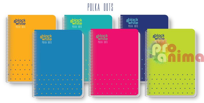 Тетрадка със спирала от серията на Black and White Polka Dots.