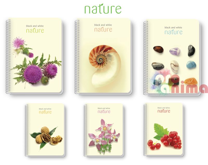 Бележник Black and White, A6, 80 листа, спирала, PP корици, Nature