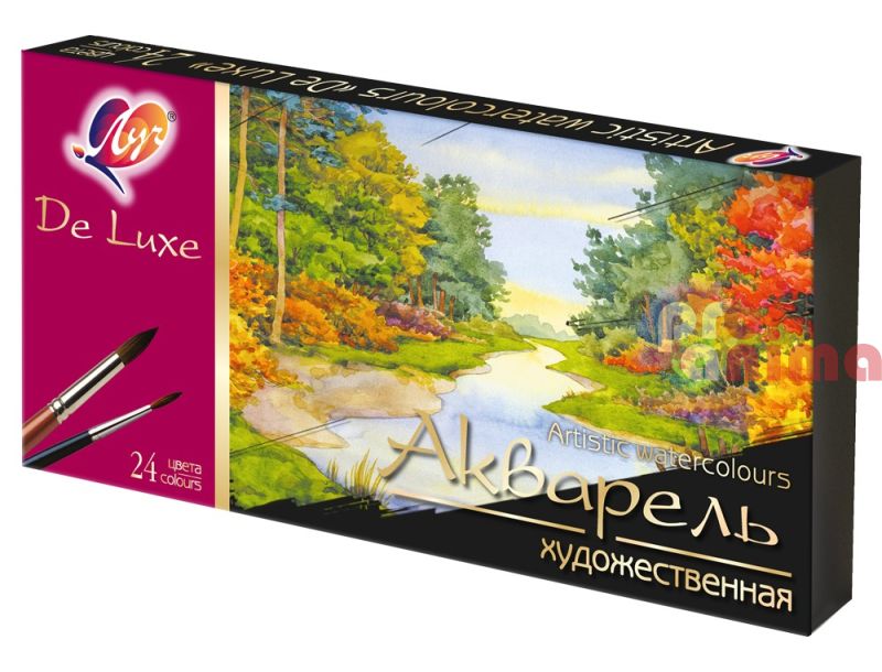 Висококачествените акрилни бои De Luxe са произведени на базата на растителна гума арабика и наситени висококачествени пигменти. Наличието и съотношението на тези компоненти прави художествената акрилна боя Луч De Luxe.