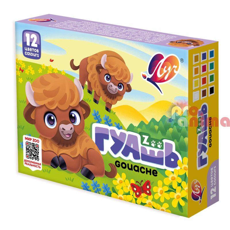 Темперни бои / гваш за деца Луч Zoo, 12 цвята, в бурканчета