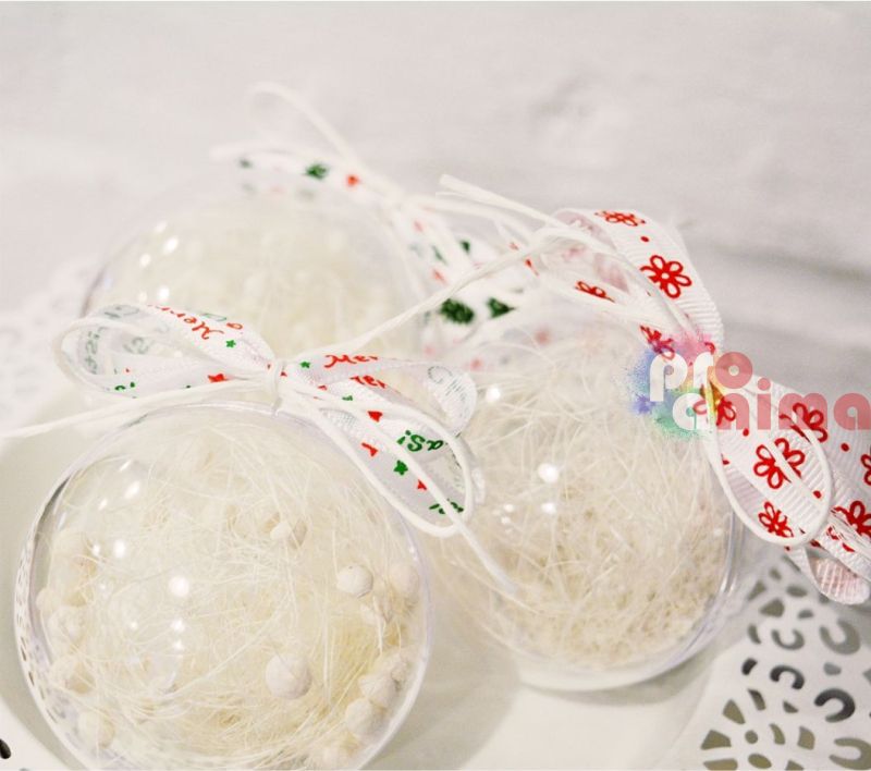 Прозрачна пластмасова топка за декориране, състояща се от две части. Подходяща за различни видове декорация, както от вътрешната, така и от външната страна.