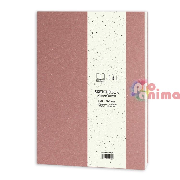 Скицникът Natural Touch в розов цвят е облечен с мека корица от грапав картон с натурална визия. Скицникът е подходящ за рисуване с графит, въглен, креда, туш, тънкописци, маркери, моливи, сух и восъчен пастел. Съдържа 128 листа хартия за скици с леко кремав цвят, обработена без киселина. Скицникът е съставен от 16 тетрадки по 8 листа, които са подшити помежду си за по-голяма здравина.