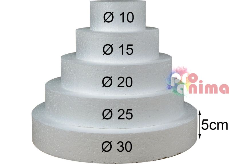 Основа за торта от стиропор, 5 етажа ф 10, 15, 20, 25, 30 x h 5 cm