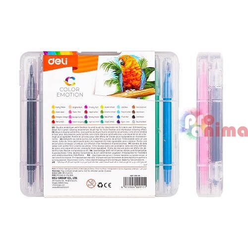 Флумастери Deli Color Emotion 24 цвята двувърхи -четка и тънкописец