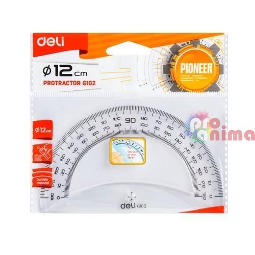 Транспортир Deli Pioneer, 180°, 12 cm