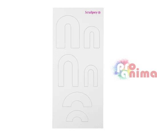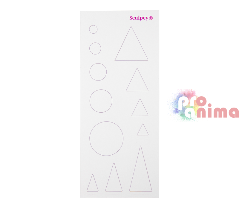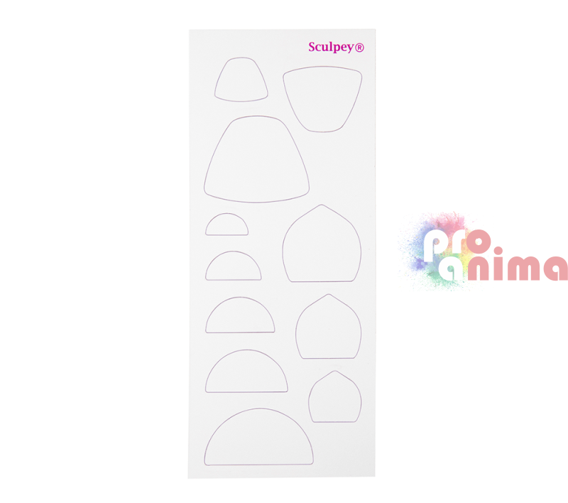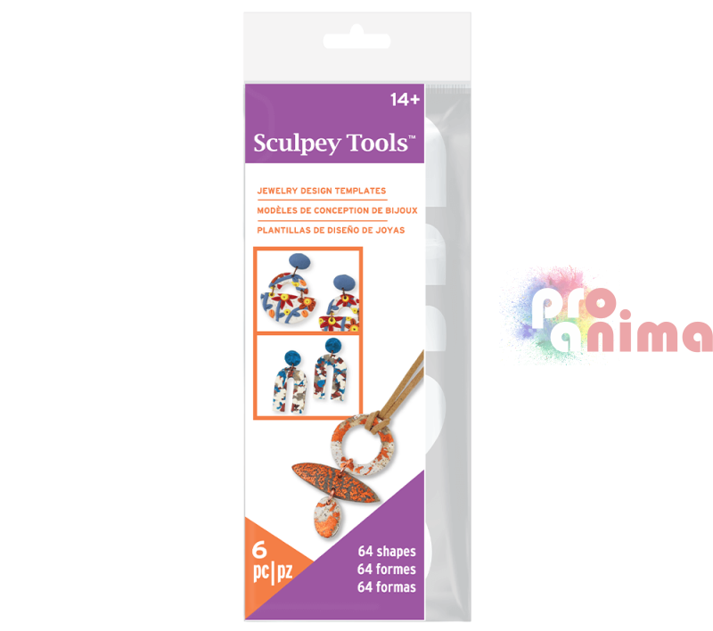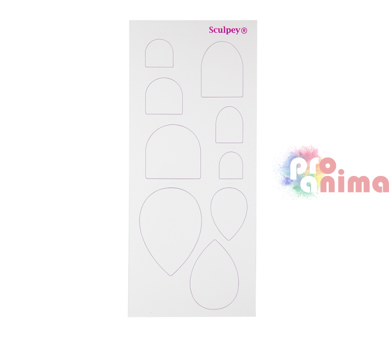 С новите шаблони на Sculpey изрязвайте бързо и лесно форми за Вашите бижута. Шаблоните или темплейти с различни форми за изрязване са изработени от прозрачен гъвкав материал за многократна употреба, който позволява лесно напасване преди рязане. Комплектът шаблони включва 6 шаблона с 64 форми в различни размери.