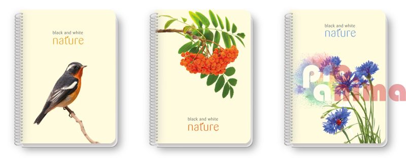 Тетрадка Black&White, малък формат А5, 150 листа, редове, спирала, PP корица, Nature